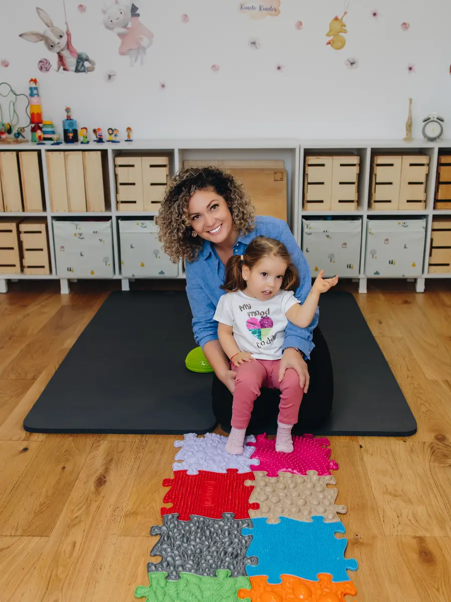 CME oferă exerciții dinamice care stimulează reacțiile motorii automate ale copilului, facilitând controlul postural și dezvoltarea funcțiilor motorii esențiale, cum ar fi statul în picioare și mersul.